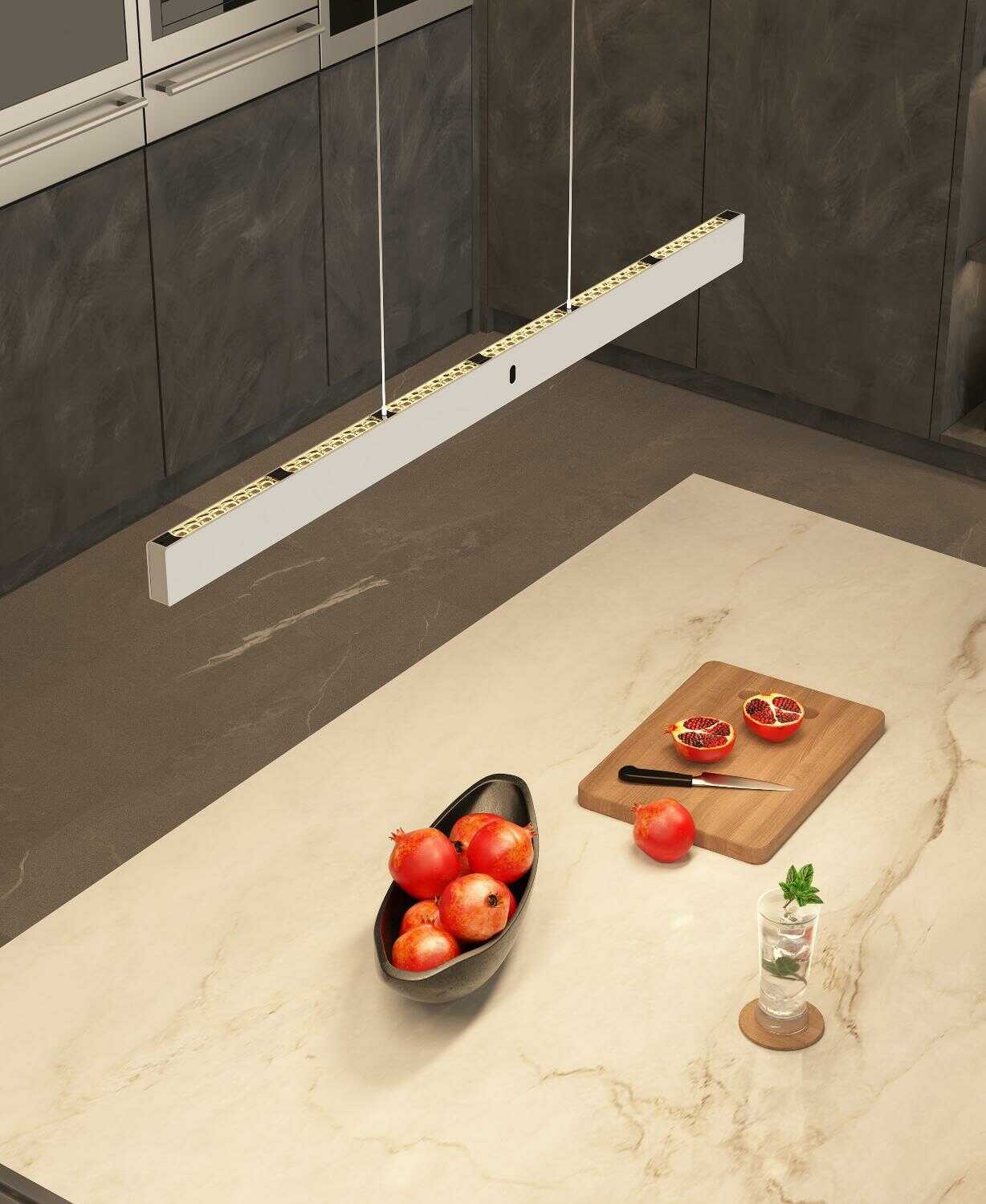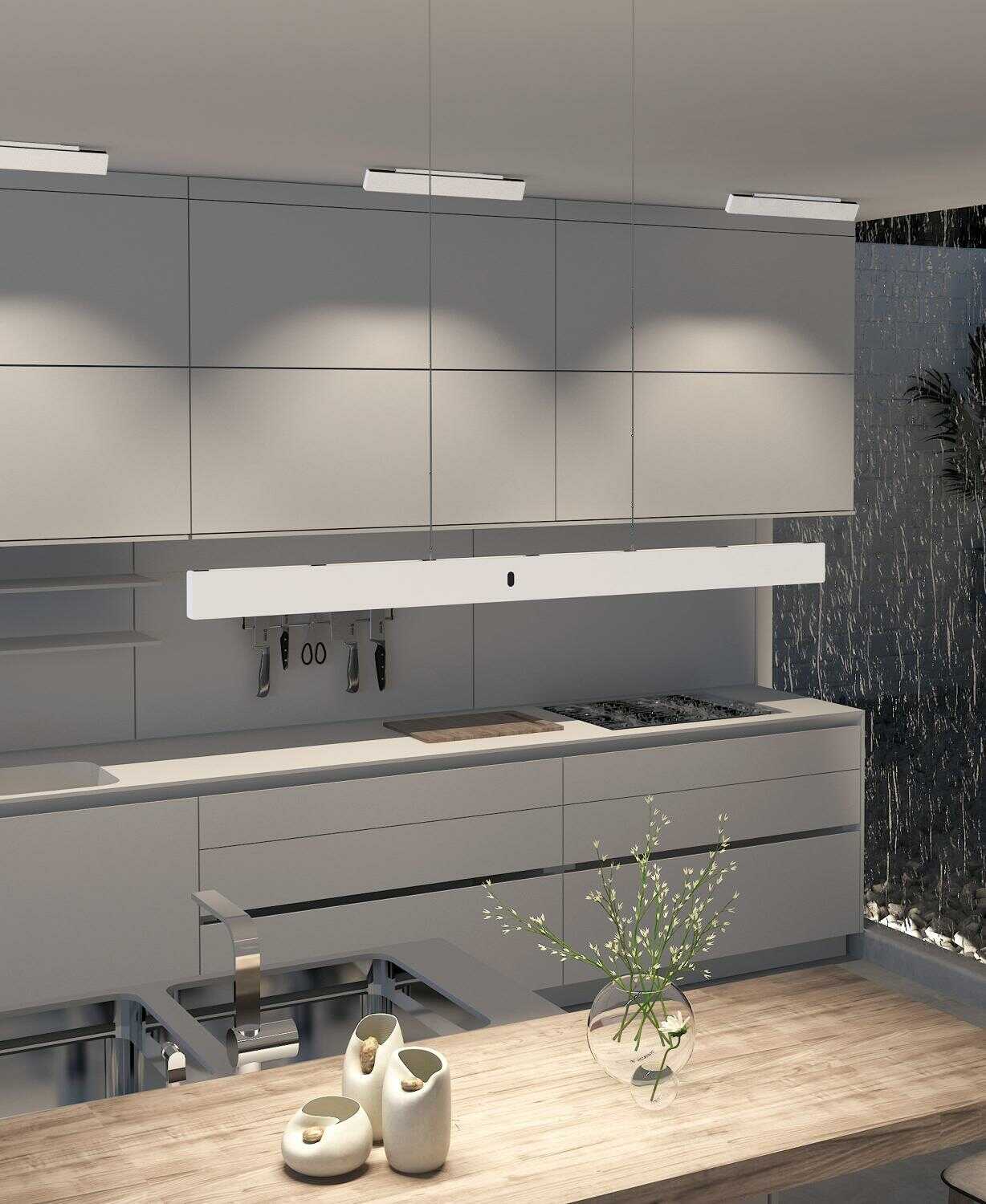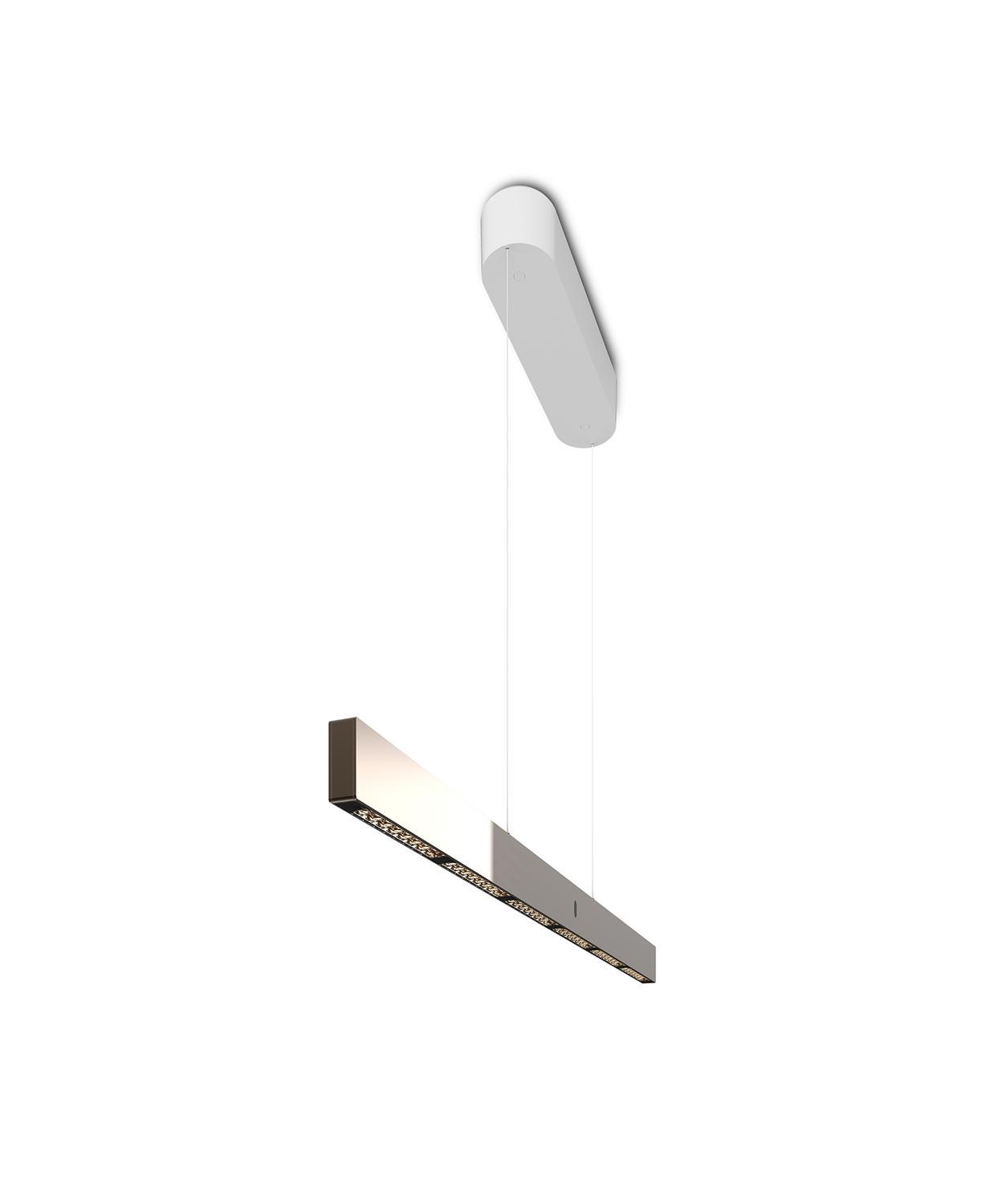 Ánh sáng trực tiếp hướng xuống dưới có CCT 27000K, ánh sáng gián tiếp hướng lên trên có thể thay đổi CCT trong khoảng 2700K- 4000K. Các thấu kính hướng lên trên được gắn cố định và có góc chùm sáng 120°. Các thấu kính hướng xuống dưới có thể thay thế góc 75° và 100°. Đối với chiều dài dây treo, có thể thay đổi liên tục từ 50cm đến 170cm bằng 1 tay.